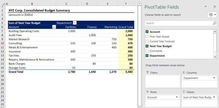 In our example we’ll cover consolidating department budgets into a single results table as, at the time of this writing, budget season is almost upon us.